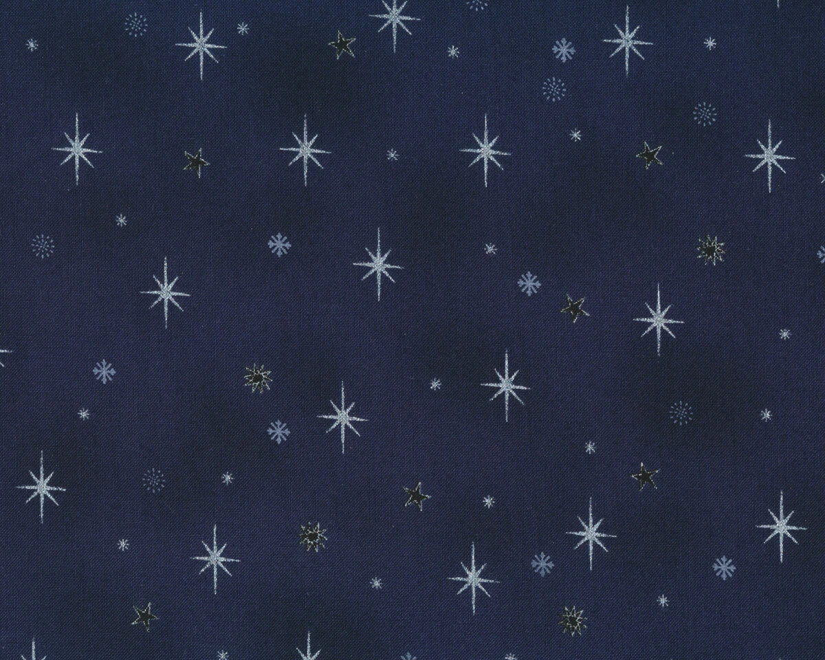 Der Weihnachts-Patchworkstoff in dunkelblau aus der Reihe CHRISTMAS IS NEAR ist mit zarten silbernen Sternen bedruckt. Denn so ein bisschen Glitzer und Schimmer gehört zu Weihnachten wie Christstollen und ein schöner heißer Punsch neben der Nähmaschine.