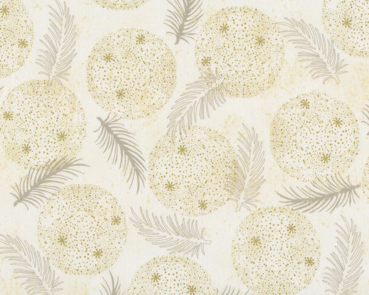 Weihnachtsstoff für Patchwork in creme mit goldenen Christbaumkugeln