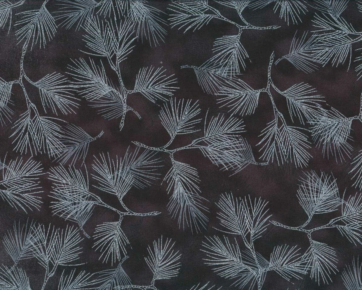 Metallic-Baumwollstoff in anthrazit mit Tannenzweigen in Silber-Print