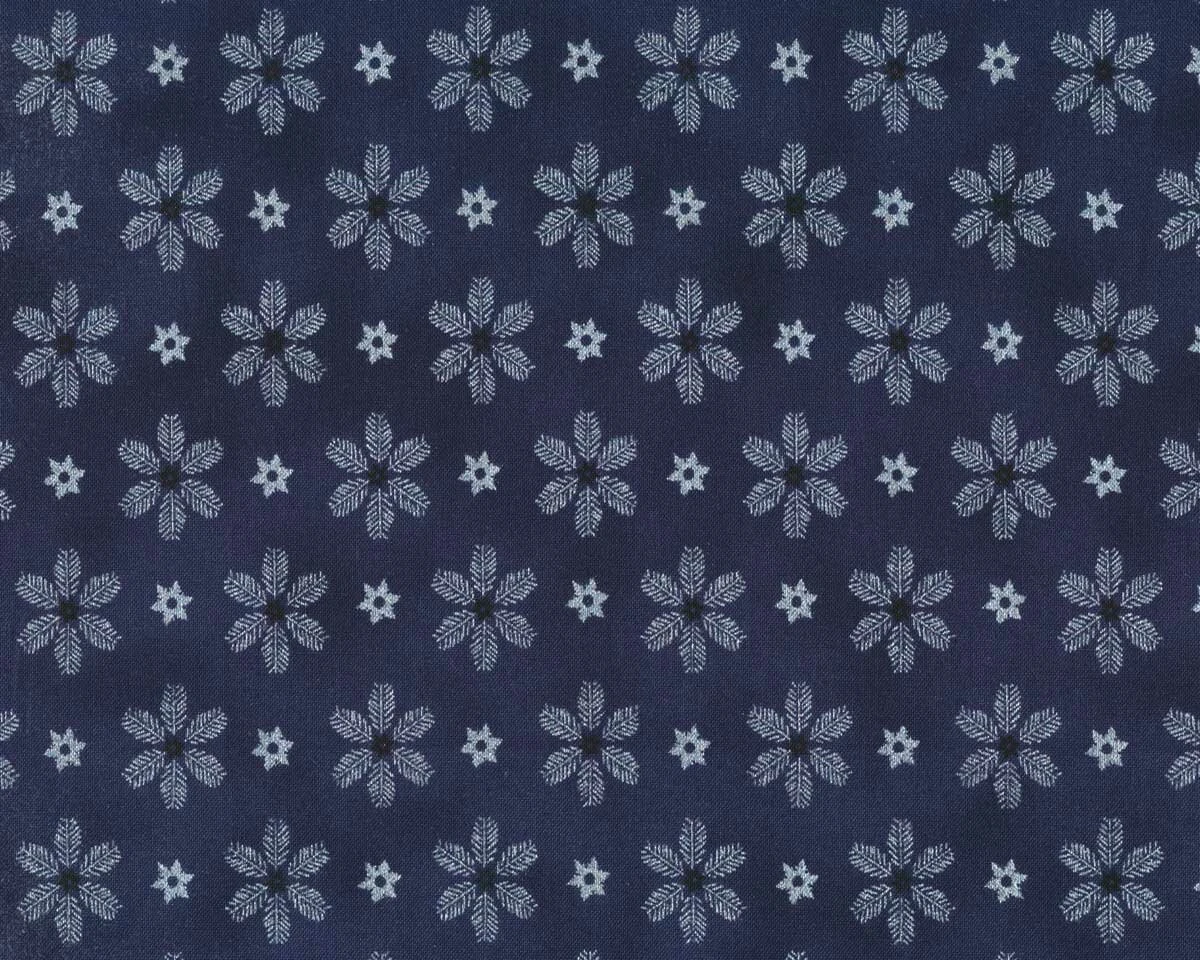Dunkelblauer Baumwollstoff mit silbernen Schneeflocken