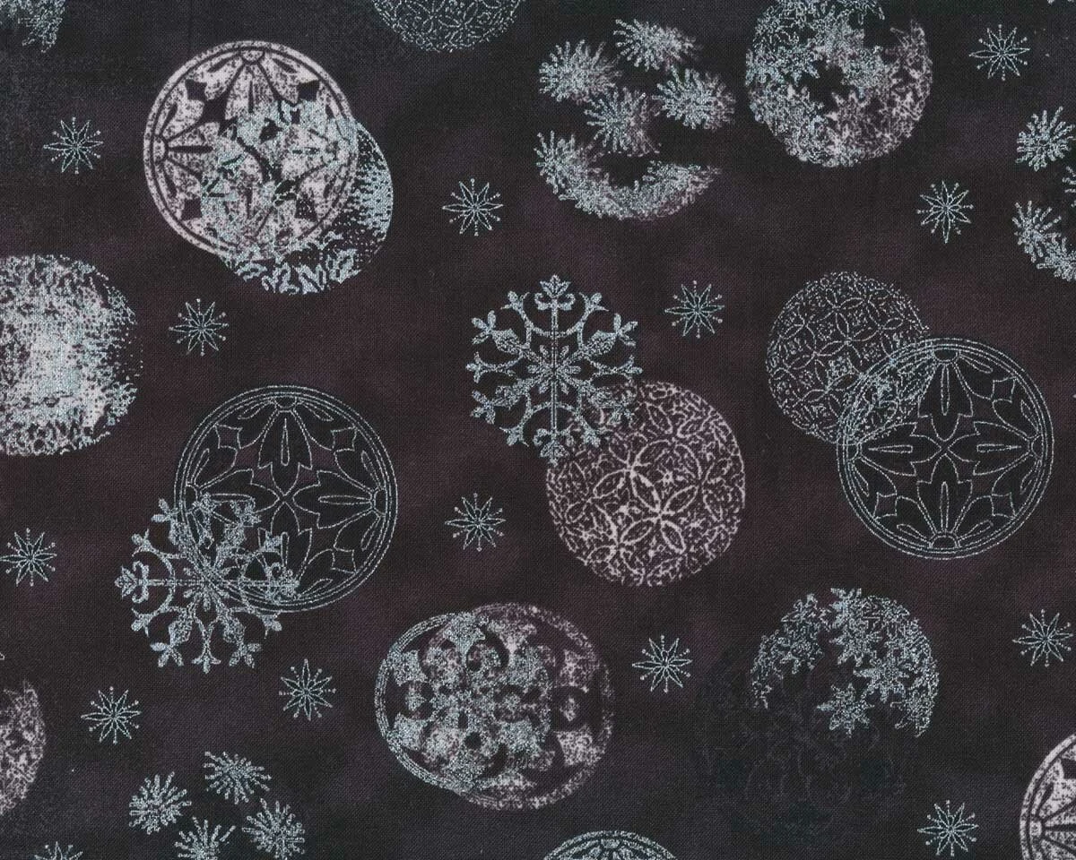 Weihnachtsstoff MAGIC CHRISTMAS in anthrazit mit Weihnachtskugeln