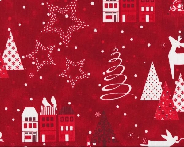 größere Weihnachtsmotive mit Häusern, Elchen (maximal 6,5 cm hoch) Weihnachtsbäumen, schablonierten Vögeln, Sternen und musizierenden Engeln