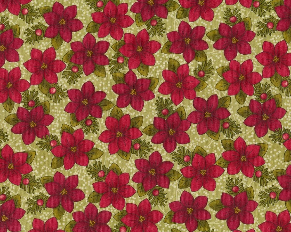 Patchworkstoff A MOOSE FOR CHRISTMAS mit Weihnachtsstern in rot von Cheryl Haynes