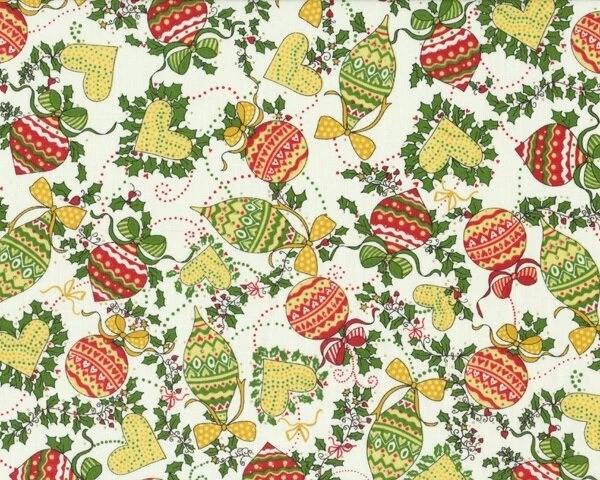 Design: Kugeln, Zapfen (maximal 6,5 cm lang) und Herzen für den Weihnachtsbaum mit Ilex-Ranken und Schleifen und Herzen