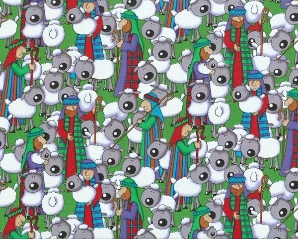 Design: Hirten (ca. 8 cm hoch) in langen Gewändern mit Hirtenstab und Schafherde