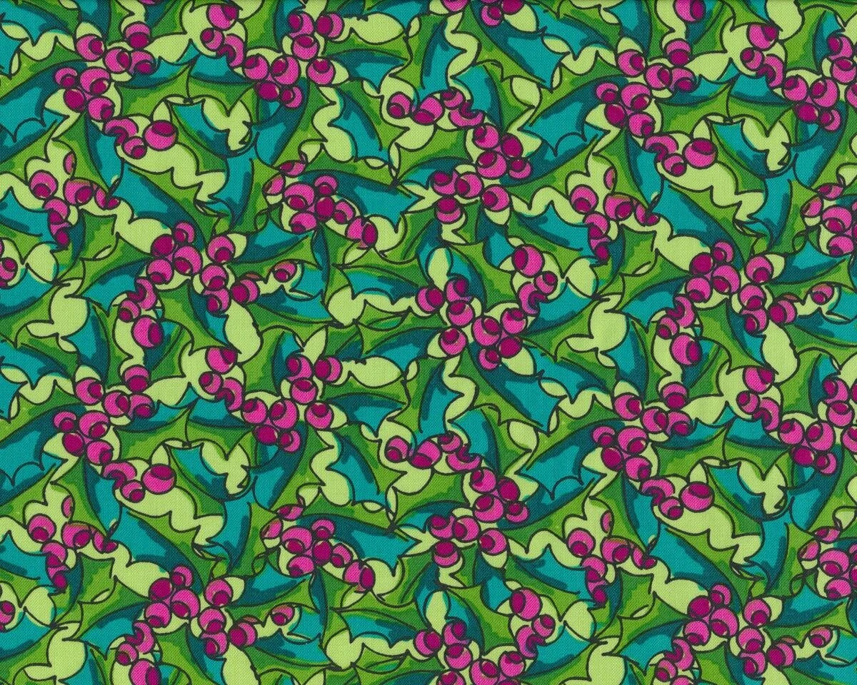 Patchworkstoff MERRY LITTLE CHRISTMAS mit Ilex in grün von Holly Helgeson
