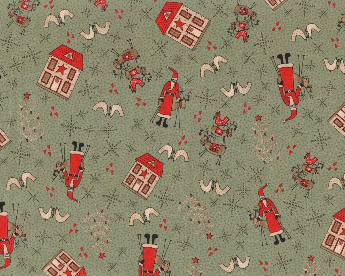 Weihnachts-Patchworkstoff in blassgrün mit Nikolaus von Lynette Andrerson