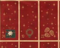 60-cm-Abschnitt Metallic-Patchworkstoff CHRISTMAS IS NEAR, Adventskalender, Weinrot-gold
