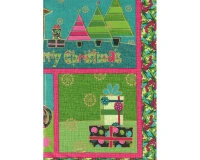 60-cm-Rapport Metallic-Patchworkstoff MERRY LITTLE CHRISTMAS, Weihnachtsbilder, Grasgrün-fuchsia