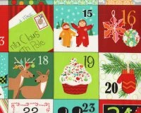 90-cm-Patchworkstoff-Abschnitt, Adventskalender A CHRISTMAS WISH, Weihnachtsfiguren, Weiß-hellgrün