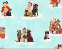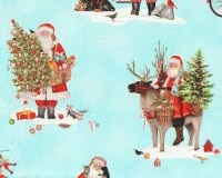 Patchworkstoff LOST & FOUND CHRISTMAS, Weihnachtsmänner, Creme-gedecktes Weinrot