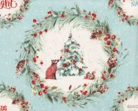 Patchworkstoff A MOOSE FOR CHRISTMAS, Weihnachtskugeln, Olivgrün-rot